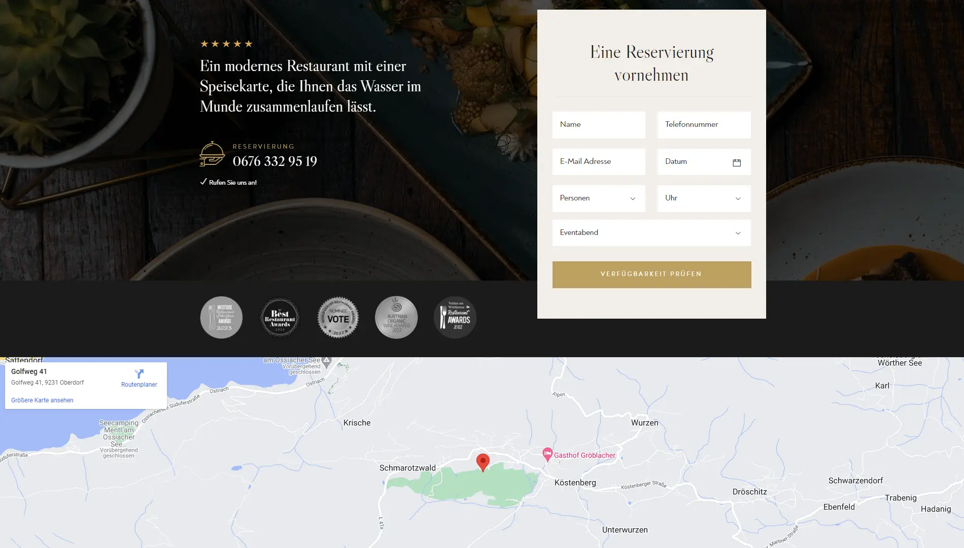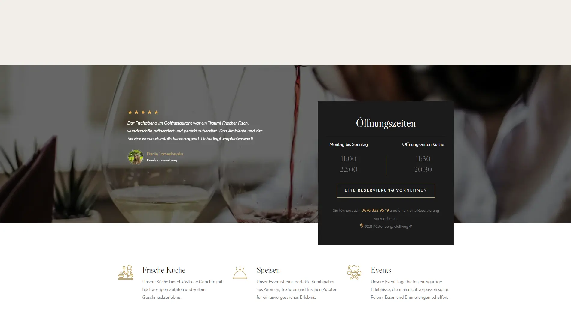Entdecken Sie das Golf Restaurant: Moderne, responsive Website mit Tischreservierung, Speise- und Weinkarte. Genießen Sie eine kulinarische Erfahrung mit klaren Preisen und ansprechendem Design